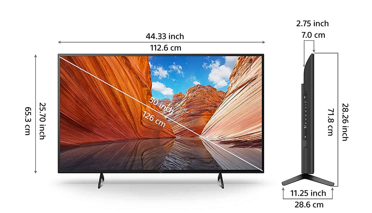 50 inches is the length of the TV measured in the diagonal direction from corner to corner. In other words the length of a line would go from one corner of the screen to the opposite. Dimensions Of Samsung 75 Inch TV In Inches And Cm.